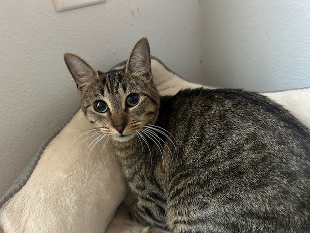 Maira is a beautiful 1 year old tabby. She is a sweetheart with the most adorable slightly crossed eyes.