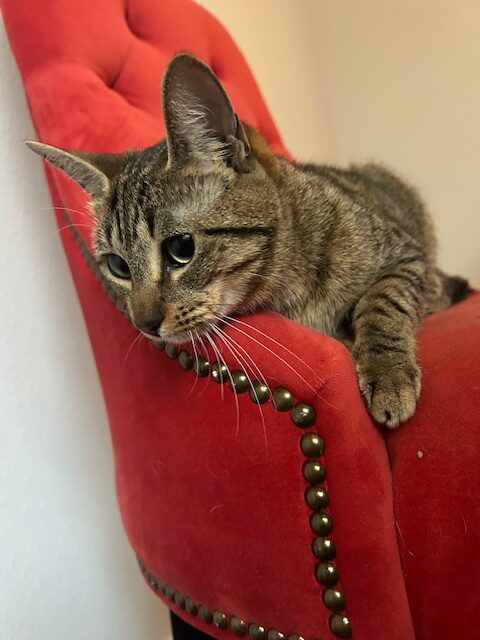 She absolutely loves snuggling up. She enjoys cozy naps on the bed. Maira has a playful side and can’t resist a good catnip toy.
